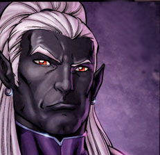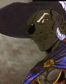 The charismatic and opportunistic drow leader of the mercenary band, Bregan D'aerthe. He eventually gave up his leadership of Bregan D'aerthe to the powerful drow psionicist Kimmuriel Oblodra and now travels the lands of Faer�n with his new companion, Artemis Entreri. Jarlaxle's history is long and vast, to read his full bio check out wikipedia